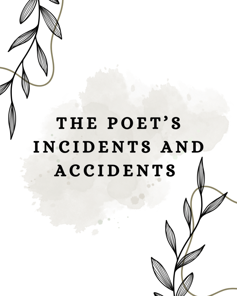 The poet never planned on becoming a collector of incidents. He thought poetry would be a clean profession, like arranging stones in a river until they spelled a feeling, or holding a mirror up to the moon and asking it politely to explain itself. He did not know, at first, that poems arrive the way bruises do—unannounced, blooming overnight, tender when touched, impossible to trace back to one clean moment. The poet learned this slowly, through accidents: spilled drinks, missed exits, wrong names spoken at the wrong time, the peculiar violence of memory arriving exactly when it is least invited.
